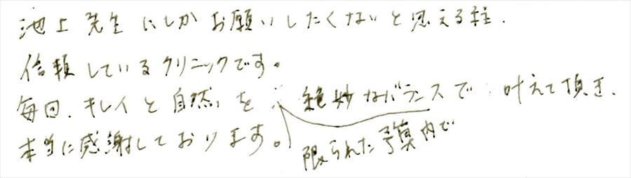 『いつも丁寧に自然に施術していただき、ありがとうございます。