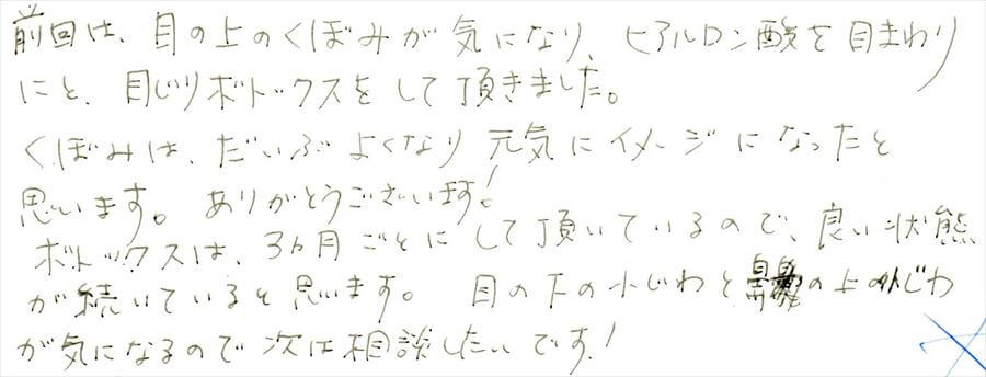 ヒアルロン酸を目周りにと目尻ボトックスをして頂きました。