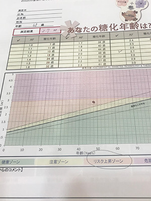 私の値は2.7AFという値だったのが、これはなんと、78歳レベル!なんだそうです。