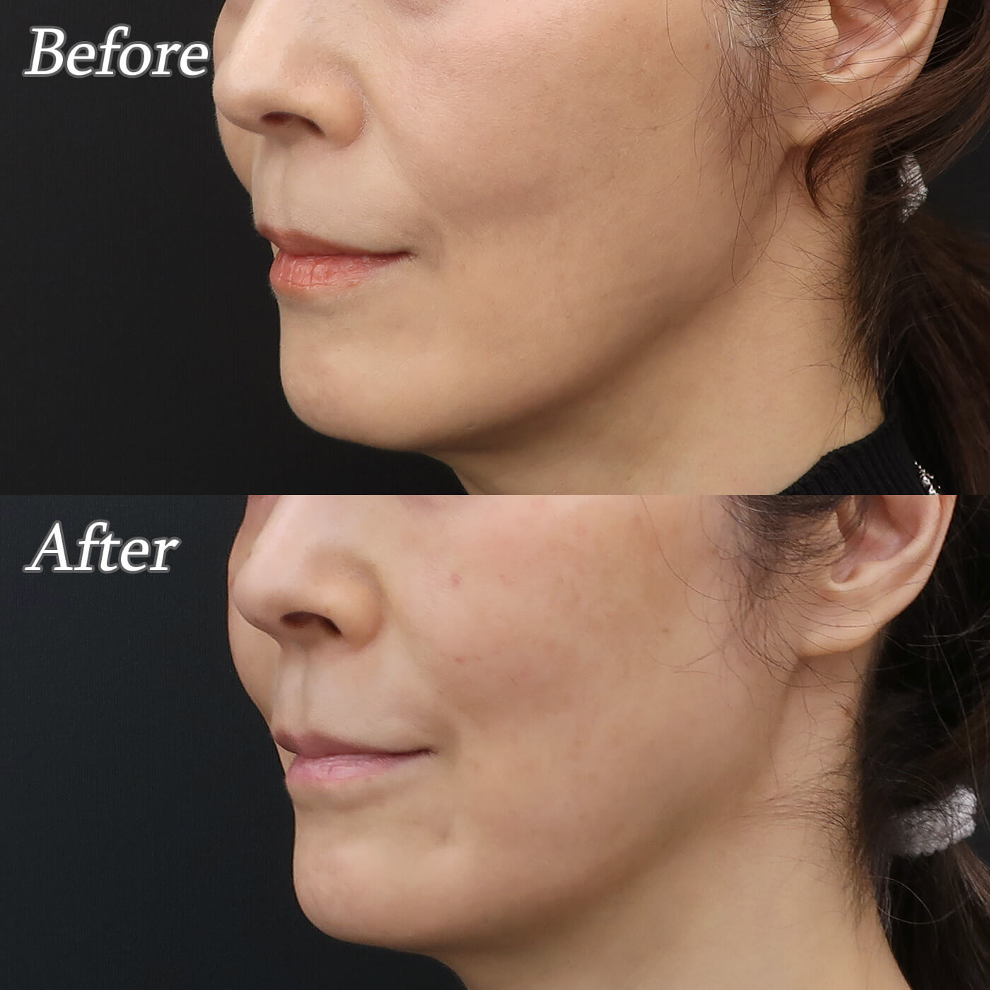 治療後は顎から頬にかけてのラインが上手く繋がって、調和の取れた若々しい印象になりました。