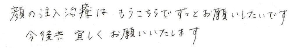 『顔の注入治療はもうこちらでずっとお願いしたいです。今後共、宜しくお願いいたします。』