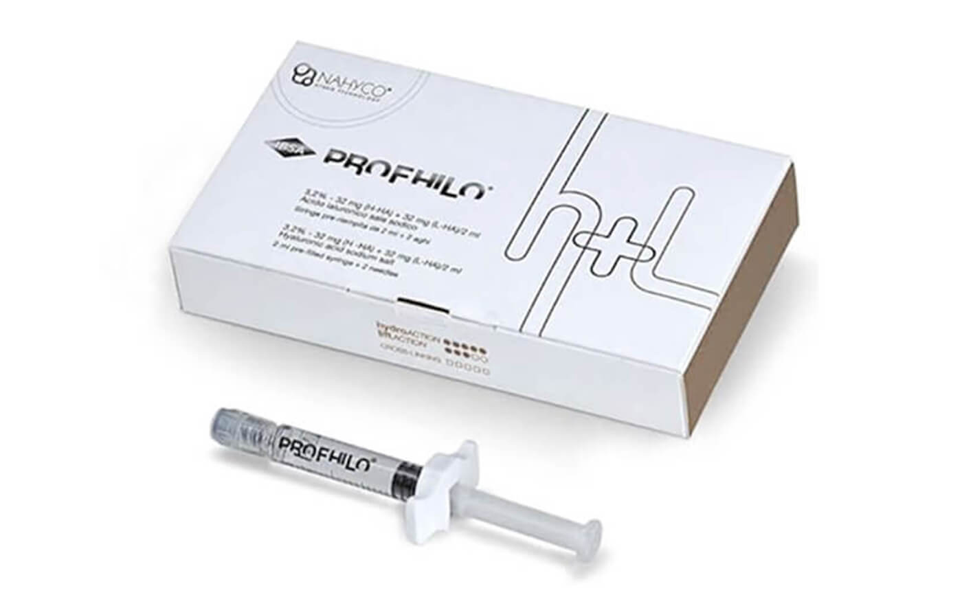 - プロファイロは、特許技術を用いて作成された高分子量と低分子量のハイブリッドヒアルロン酸製剤です。ヒアルロン酸が本来持っている真皮細胞を活性化させる働きを強化した特別な薬剤で、これまでのヒアルロン酸注入とはまったく違う治療です。
